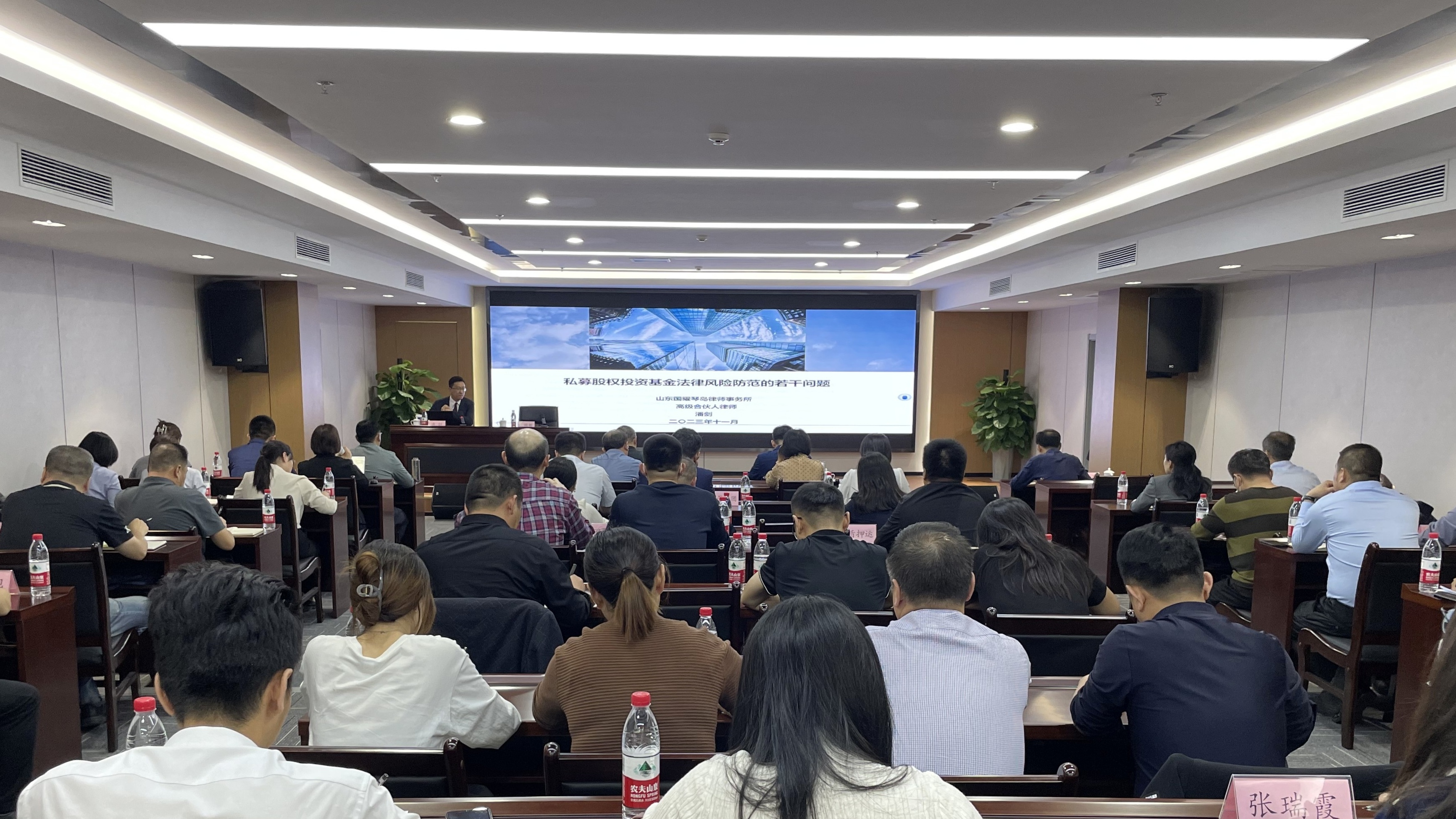 潘剑主任结合自身多年的实践经验,分别从GP、LP的不同视角讲解国有平台公司参与股权投资基金的运作模式、投资风险以及违反相关规定可能带来的法律后果,并系统解读私募股权投资基金备案新增要求。此次培训,既有宏观政策的深入分析,又有实际案例的微观切入,使大家对基金业务、国有公司私募股权投资的运作和实操有了更深的认识,为今后应对工作中遇到的实际问题提供了解决思路。