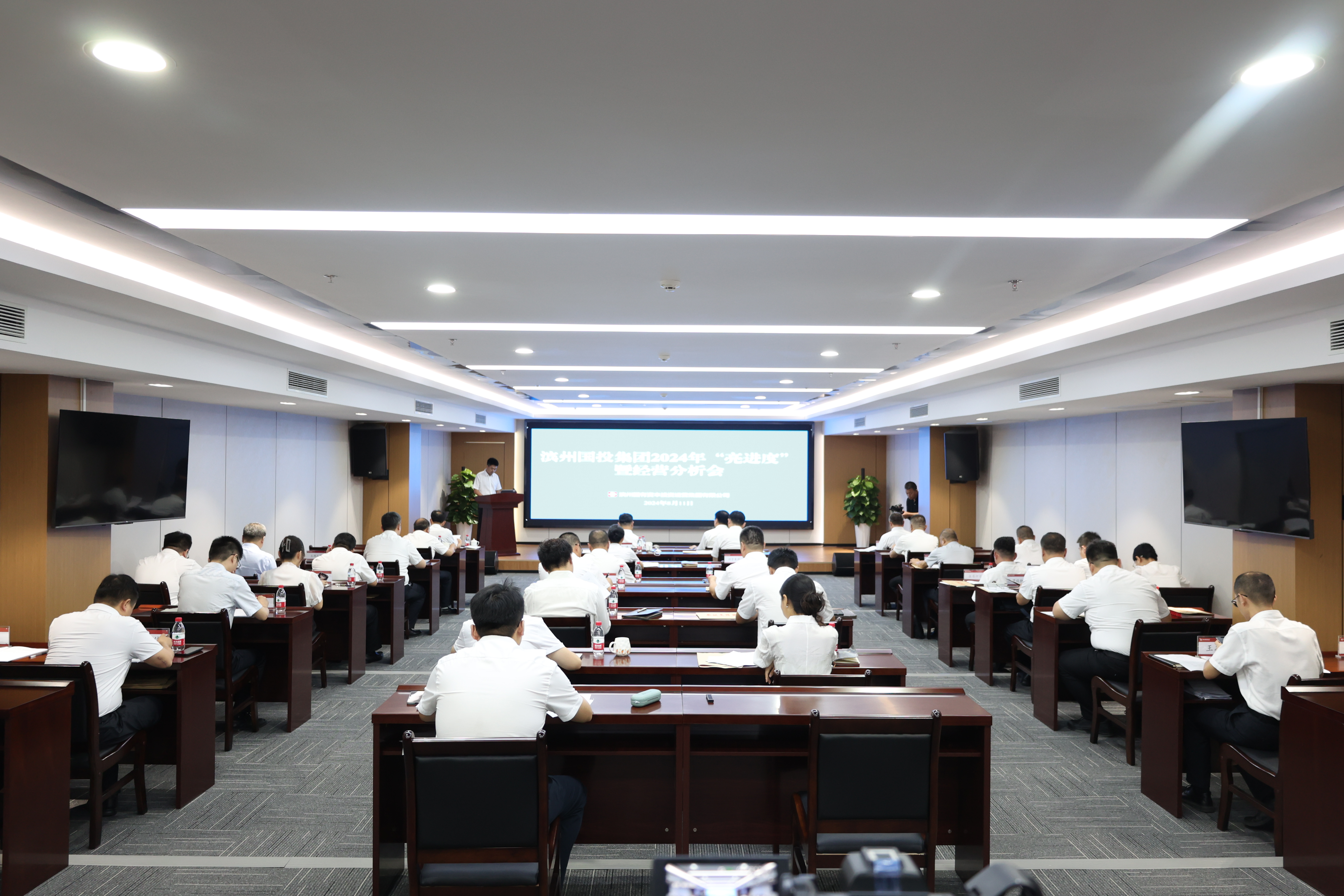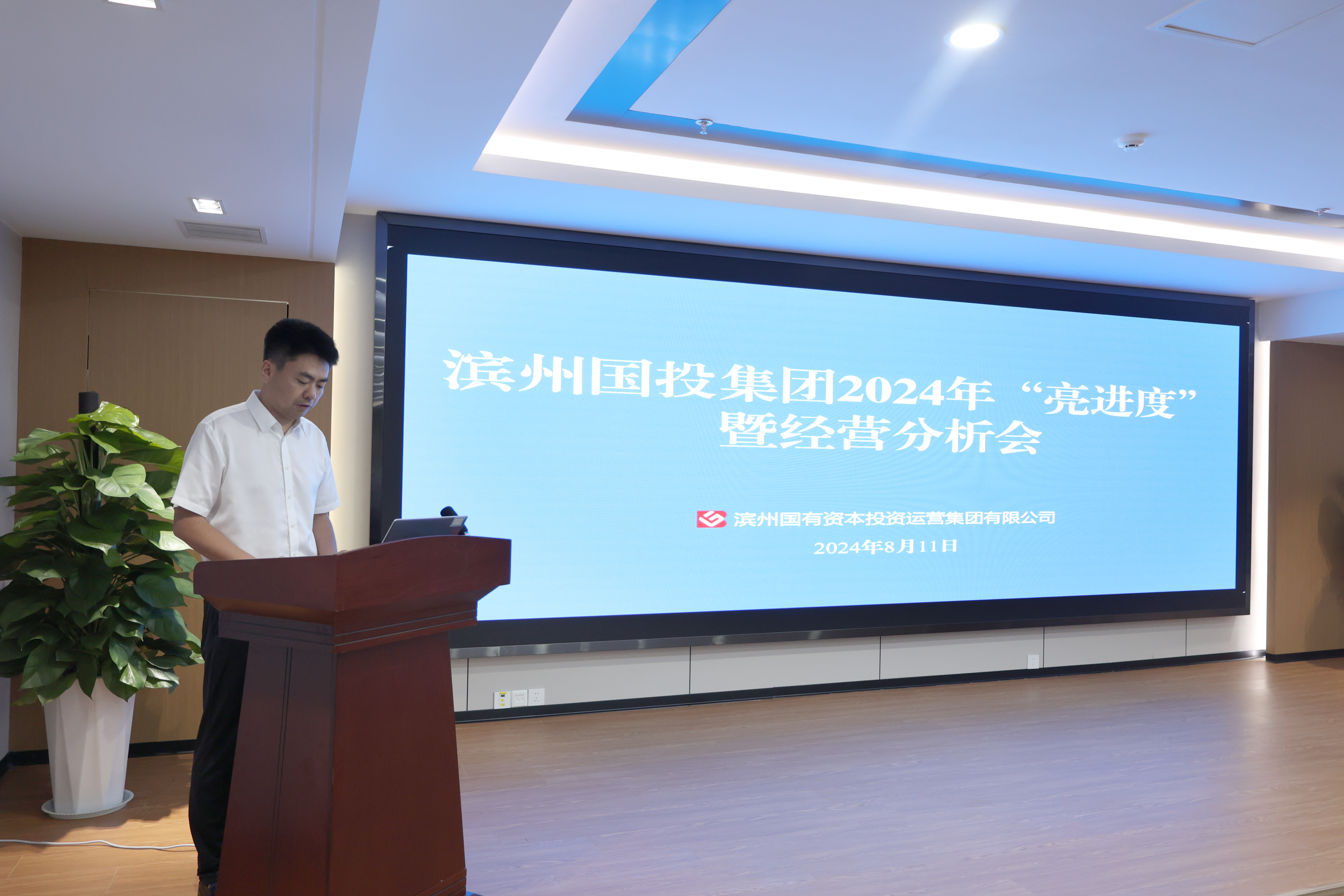 8月11日上午,滨州国投集团召开2024年“亮进度”暨经营分析会,全面学习贯彻党的二十届三中全会精神,深入落实全市2024年“亮进度”和市国资委经济运行分析会议精神,总结今年以来集团经营情况,分析研判形势挑战,安排部署下阶段重点工作,动员全体干部职工统一思想、加压奋进,大干三季度,决战全年度,坚定不移完成全年任务目标。集团党委书记、董事长商志新出席并讲话,集团党委副书记、董事孙延滨主持会议。